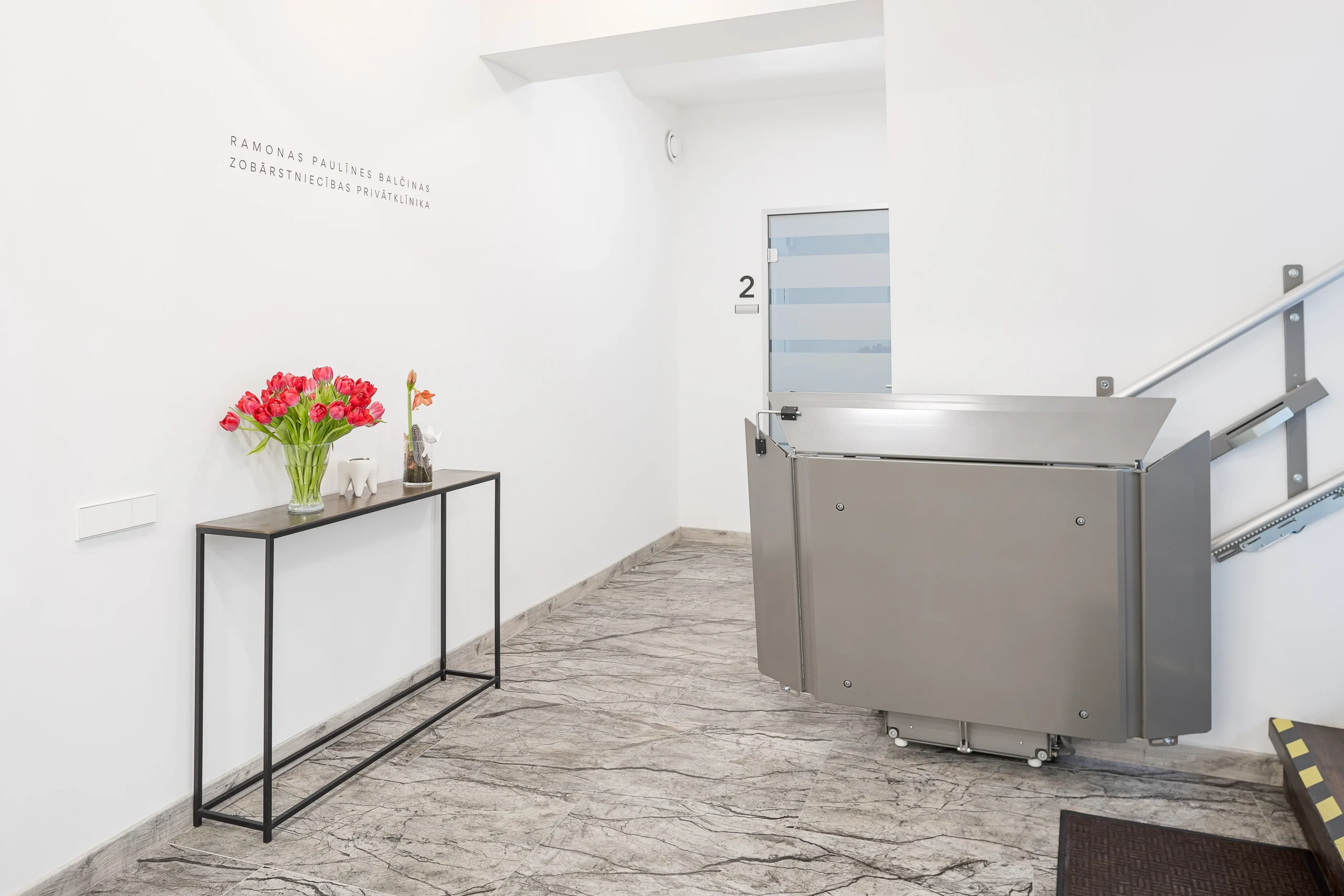 Izstrādāts risinājums, izanalizējot esošo koptelpu, izstrādājot vairākus potenciālos telpu izkāŗtojumus. Tika ņemti vērā ne tikai klienta uzstādījumi, bet arī normatīvo aktu prasības. Plānojumu ierobežoja esošā vidējā mūra siena, un pakāpieni pie ieejas klīnikā.